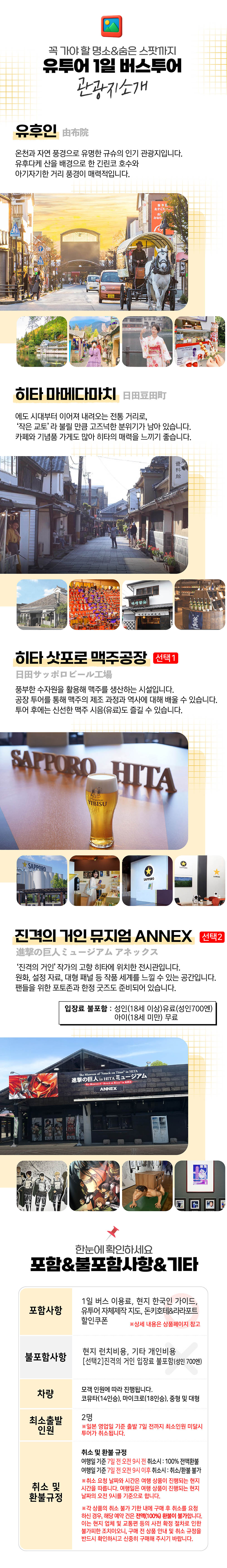 [히타N유후인] 일본 후쿠오카 버스투어 1일 일일 현지 여행 유투어버스BESTMD