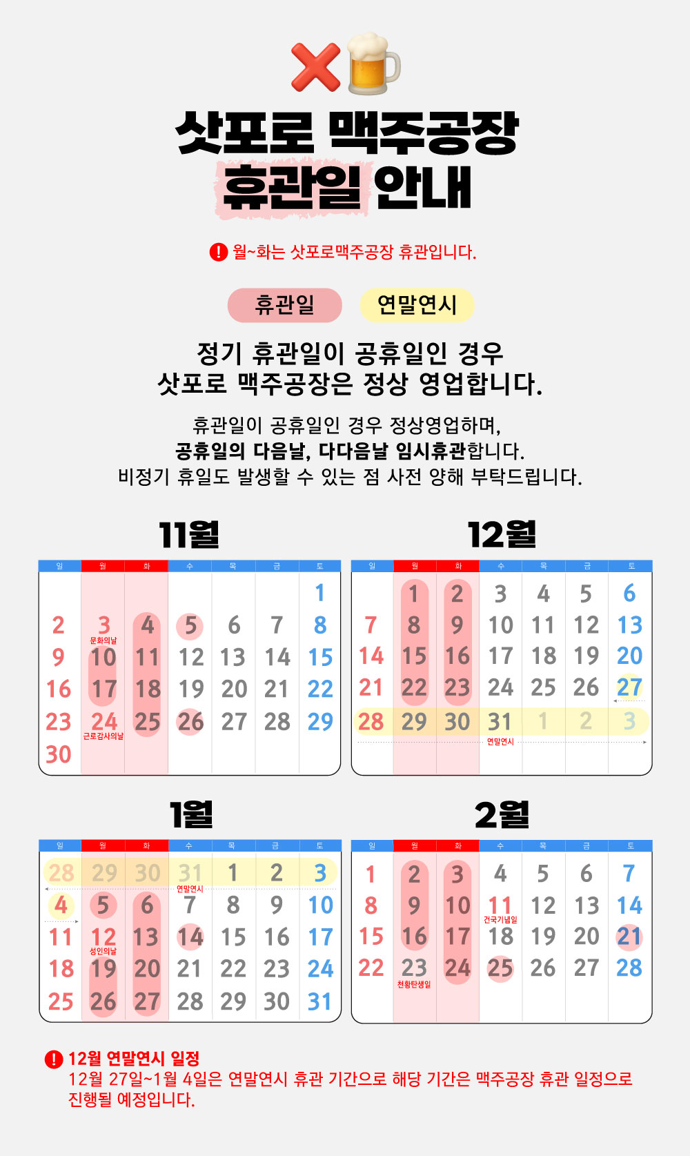 [운행기간] 2025년 12/1~3/31, 4월 이후 일정은 차후 업데이트될 예정입니다.