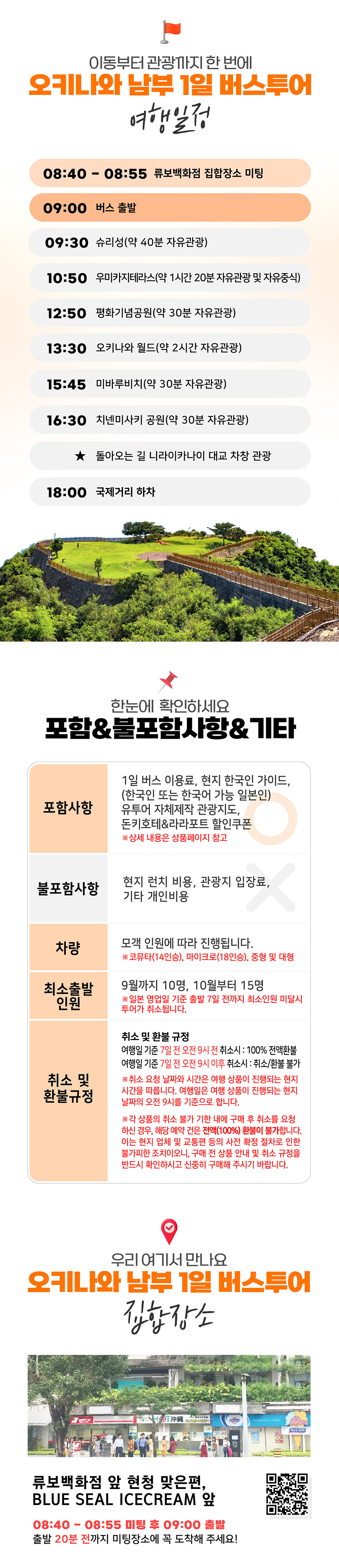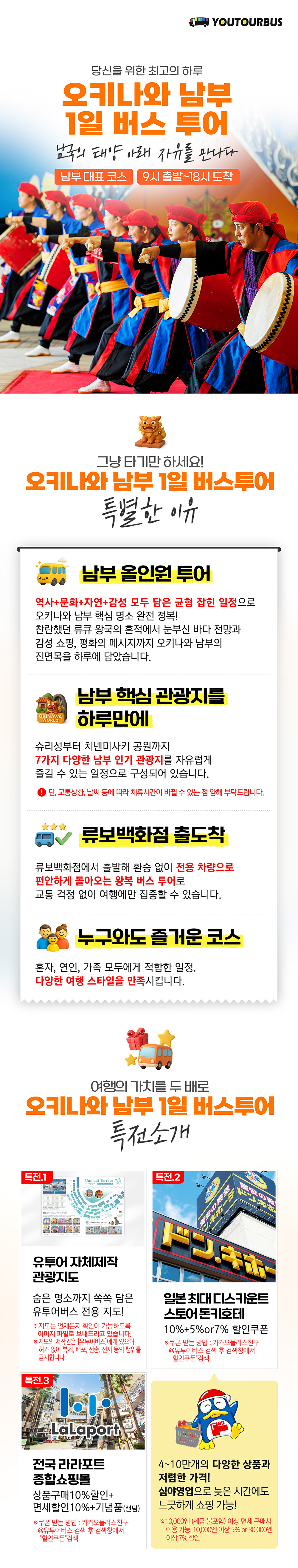 남부 오키나와 버스투어 1일 핵심 관광지 유투어버스 자유여행 [15명이상출발]