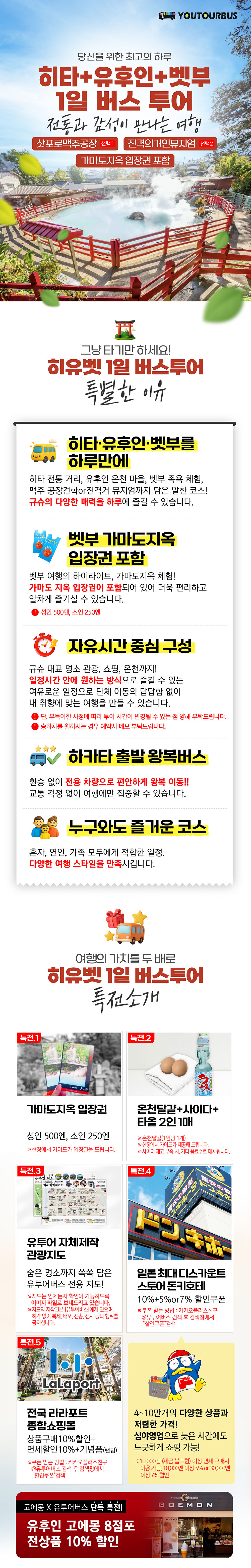 간식증정&입장료포함[히유벳] 히타N유후인N벳부 1일 버스 투어 (유후인 하차 가능) 후쿠오카 유투어버스