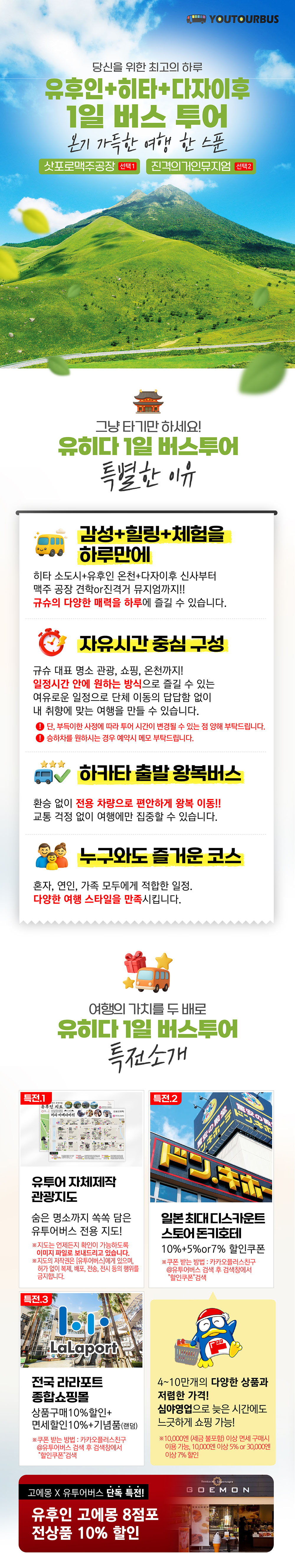 [금토일운행] 유후인N히타N다자이후 일본 후쿠오카 1일 버스투어 유투어버스