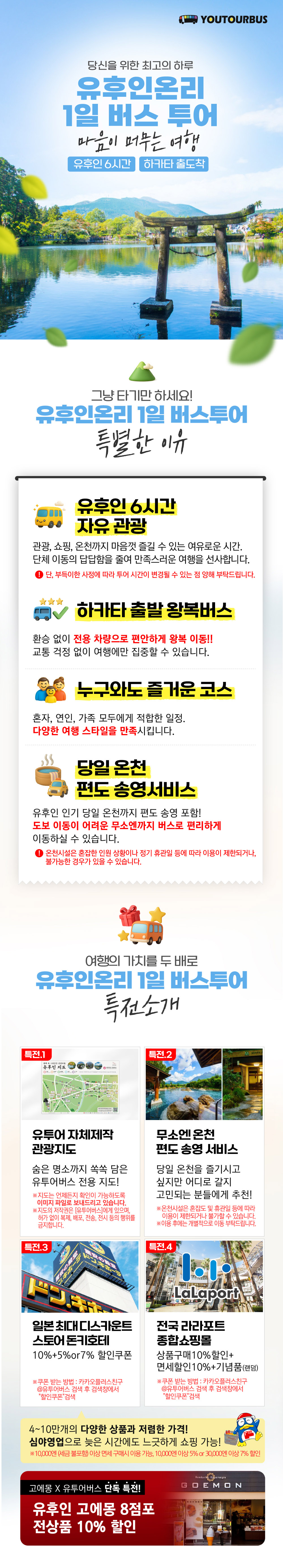 [유후인ONLY] 일본 후쿠오카 1일 버스투어 현지 여행 유투어버스 대형버스(10명이상출발)BESTMDHOT