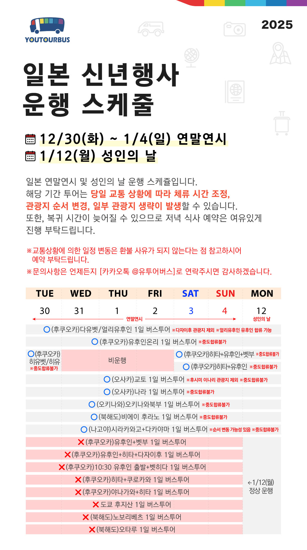 [운행기간] 2025년 10/1~2/28, 3월 이후 일정은 차후 업데이트될 예정입니다.