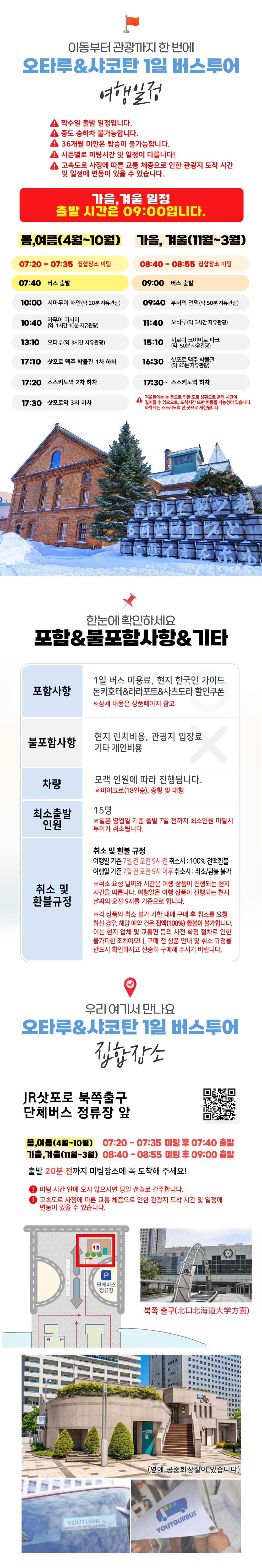 [짝수일운행]삿포로 오타루 샤코탄 1일 버스 투어 북해도 홋카이도 유투어버스BESTMDHOT